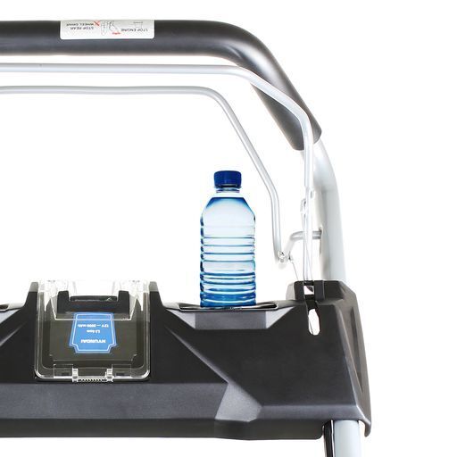The soft grip handles can be folded forwards oven the main body for extra-compact storage to save space in your garden shed or garage. It even comes with cup holders to hold those all important ice-cold drinks in the summer to keep you cool and comfortable whilst mowing your lawn. After use, the underneath of the deck can be quickly and easily cleaned by connecting your garden hose and swilling the bottom of the deck with water.